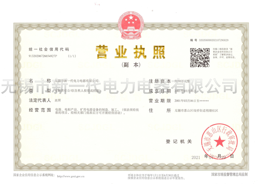 Wuxi Xinyidai Electric Power apparatus Co., Ltd. 無錫市新一代電力電器有限公司